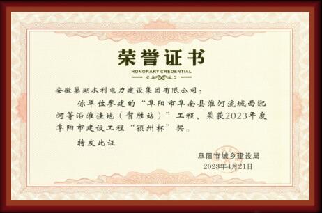 “潁州杯”榮譽證書