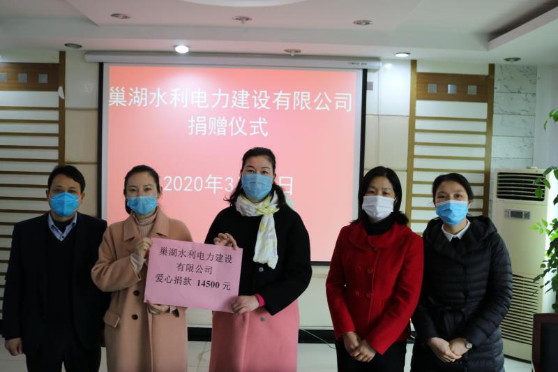 抗擊新型冠狀病毒感染肺炎疫情正處在防控關鍵時刻,為此公司倡儀全體員工攜起手來,充分發揚巢湖水利電力建設有限公司“方有難、八方支援”的光榮傳統,尤其是黨員干部要充分發揮模范帶頭作用,本著“自愿、公開”的原則,積捐款,以實際行動踐行使命和擔當,弘揚愛心奉獻精神。病毒無情人有情,人間處處有大愛。疫情防控與每個人息息相關,迎戰病魔,我們同呼吸、共命運、心連心。讓我們行動起來,共克時艱!截止至2020年3月10日共捐款計人民幣壹萬肆仟伍佰元整。