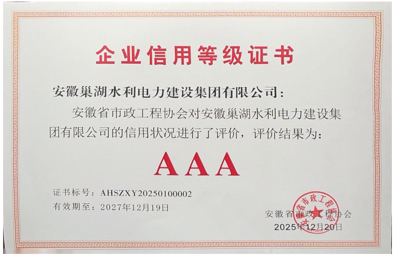 安徽省市政施工企業信用評價AAA企業